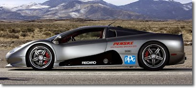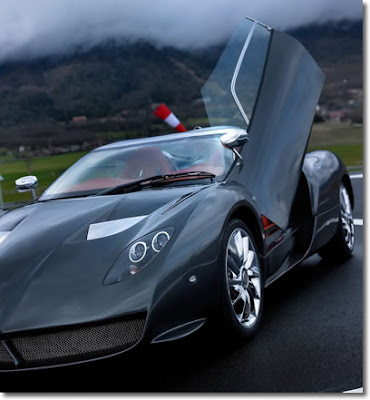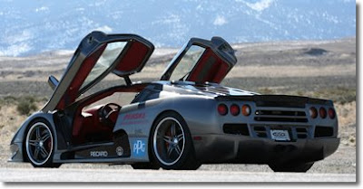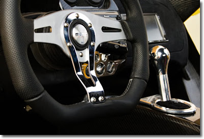 The mid-engine Saleen S7 has front and rear trunks and comes with Mulholland Brothers custom-made, 3-piece, fitted luggage. In true supercar style, the doors open up and away from the body.