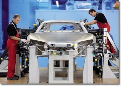 The Audi R8 is being built on a small-lot production line in a specially constructed new block at the Audi plant in Neckarsulm. The entire production process - from the bodyshell construction to final assembly - is organized in the same way as a craft workshop. Small teams of specialists accompany every step of production, ensuring that every one of the maximum of 15 cars per day built is up to quality standards.